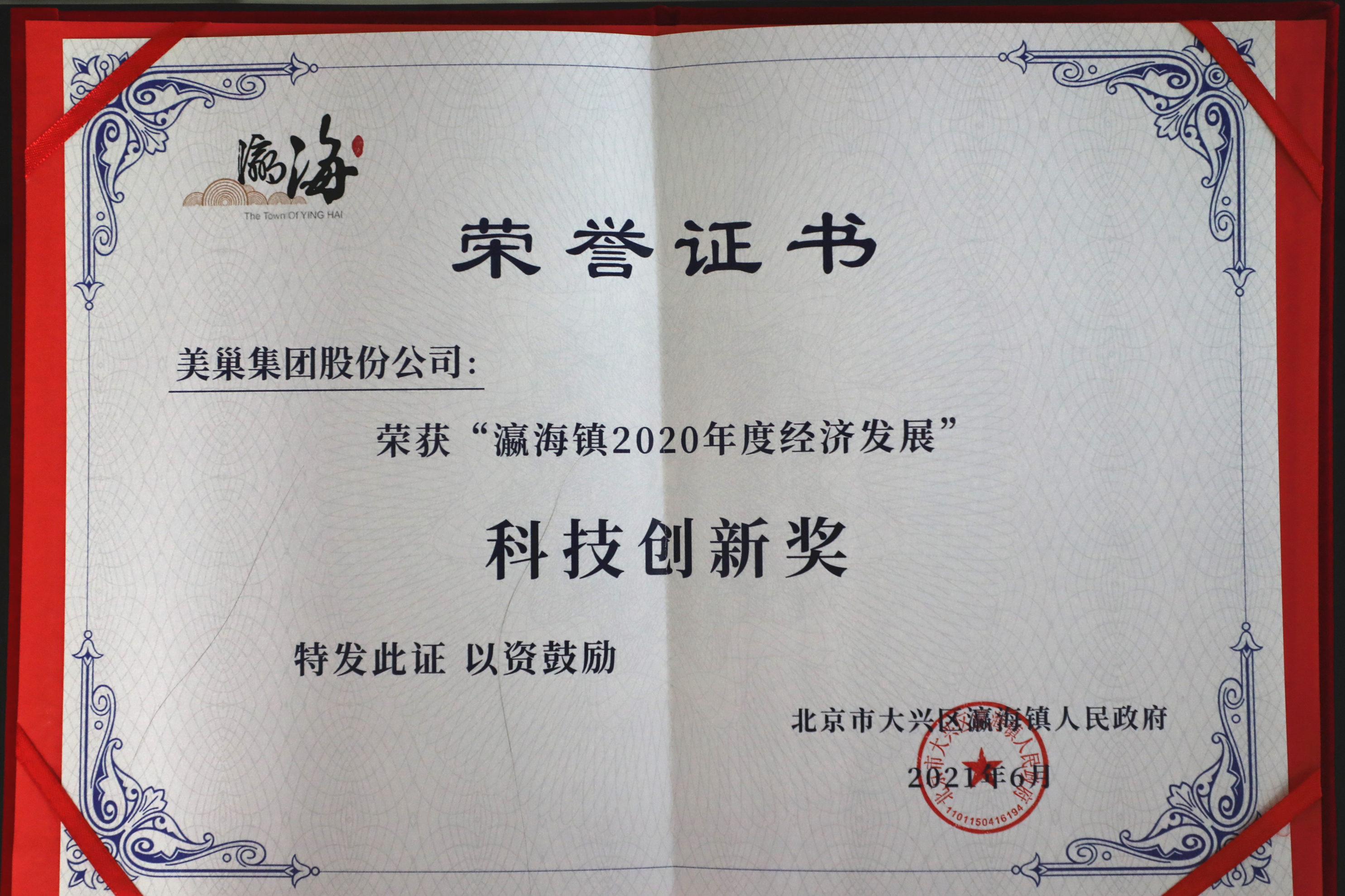 頒發(fā)單位:北京市大興區(qū)瀛海鎮(zhèn)人民政府