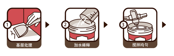 | 施工事項: | 應(yīng)加水稀釋使用,加水比例為30%~50%,須涂刷2遍,第一遍表干后再涂刷第二遍,以確保涂刷完全、無漏涂。涂膜表干后即開始后續(xù)施工,可以提升雙向滲透效果,強化粘結(jié)強度。 |